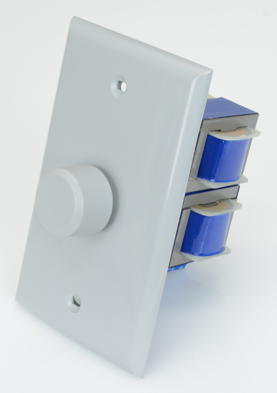 The AW-IMP100WV 100 watt outdoor in-wall impedance matching volume control can be configured to maintain a safe system load when multiple controls and speakers are connected. These controls utilize autoformers to efficiently transfer the power from amplifier to speaker. Autoformers are the electrical equivalent to a gearbox in an automobile with each of the 12 volume positions a different gear. It is common to use these controls with outdoor landscape speakers.